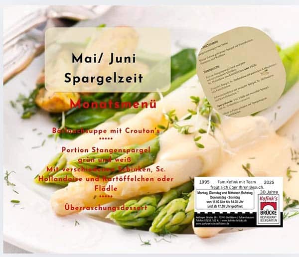 StartFilderanzeigenSpargelgenuss im Mai bei Kofink’s Brücke