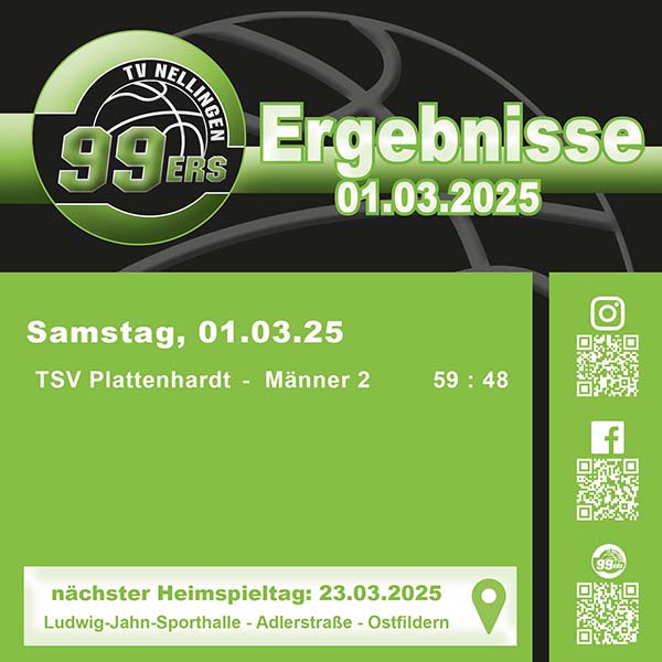 Am Samstag ging es für unsere zweite Herrenmannschaft auswärts gegen den TSV Plattenhardt aufs Parkett. Mit vollem Einsatz und einer starken Teamleistung hielten die 99ers das Spiel lange offen. Jeder Ball wurde umkämpft, jeder Punkt hart erarbeitet! Doch am Ende fehlte das letzte Quäntchen Glück – der Sieg blieb diesmal knapp außer Reichweite. Trotzdem: Starke Leistung, Männer!