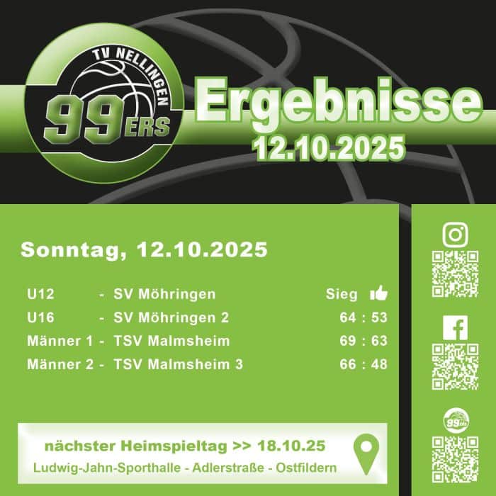 Die Herren 2 der TV Nellingen 99ers wollten zuhause gegen den TSV Malmsheim an ihre starke Leistung der letzten Wochen anknüpfen – und das gelang eindrucksvoll! Von Beginn an zeigte das Team von Coach Felix Mallinowski eine klare Marschrichtung: volle Power nach vorn und den Gegner früh unter Druck setzen. Zwar blieben die Gäste aus Malmsheim zunächst dran, doch die 99ers erspielten sich Stück für Stück einen kleinen Vorsprung. Im zweiten Viertel drehten die Nellinger dann richtig auf: mit konzentrierter Defense, cleverem Passspiel und starkem Zug zum Korb setzten sie sich nun deutlicher ab. Bis zur Halbzeit standen schon 28 Punkte Vorsprung auf der Habenseite! In der Kabine gab es vom Coach kaum etwas zu korrigieren. Also hieß es: weitermachen wie bisher. Und genau das taten die 99ers! Auch wenn Malmsheim nach der Pause besser ins Spiel fand, hatten die Nellinger immer die passende Antwort parat. Beide Teams lieferten sich im Schlussviertel einen offenen Schlagabtausch, doch der souveräne Vorsprung der Nellinger geriet nie ernsthaft in Gefahr. Am Ende stand der Heimsieg auf dem Konto. Ein weiterer Beweis für die starke Form und den Teamgeist des zweiten Herren-Teams!