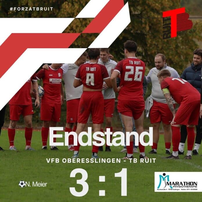 Ein Sonntag zum Vergessen für den TB Ruit. Die Mannschaft von der Talwiese musste sich beim VfB Oberesslingen/Zell mit 1:3 geschlagen geben und blieb dabei hinter den eigenen Erwartungen zurück. Zu einfache Gegentore, fehlende Chancenverwertung und eine ruppige Gangart des Gegners prägten die Partie.